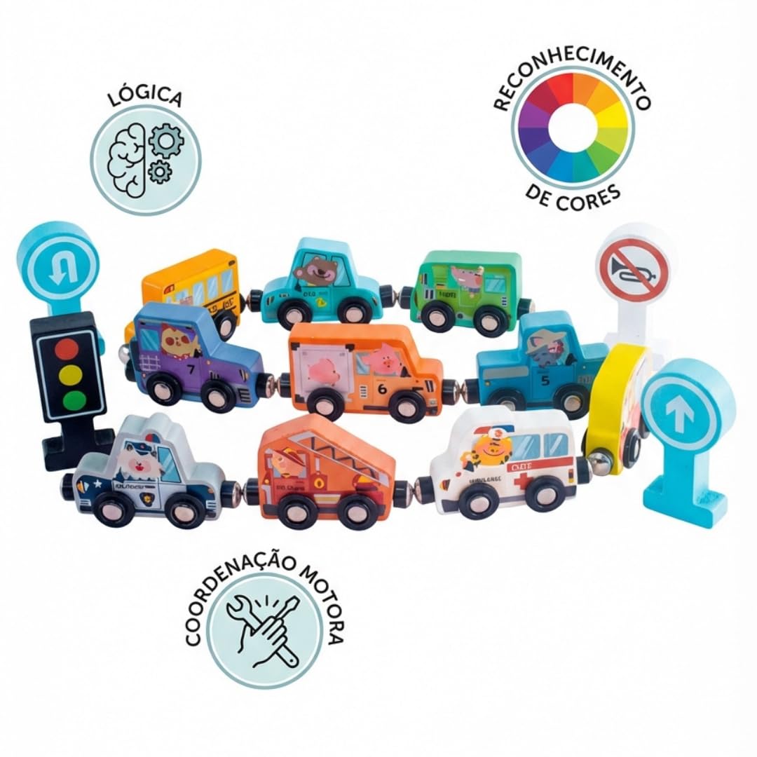 Desenvolvimento da Coordenação Motora Fina, Alfabetização Numérica e Sequenciamento, Identificação de Cores e Veículos Especiais, Noções de Causa e Efeito (Conexão Magnética), Introdução a Regras de Trânsito, Estímulo ao Foco e Concentração (Físico/Tátil)