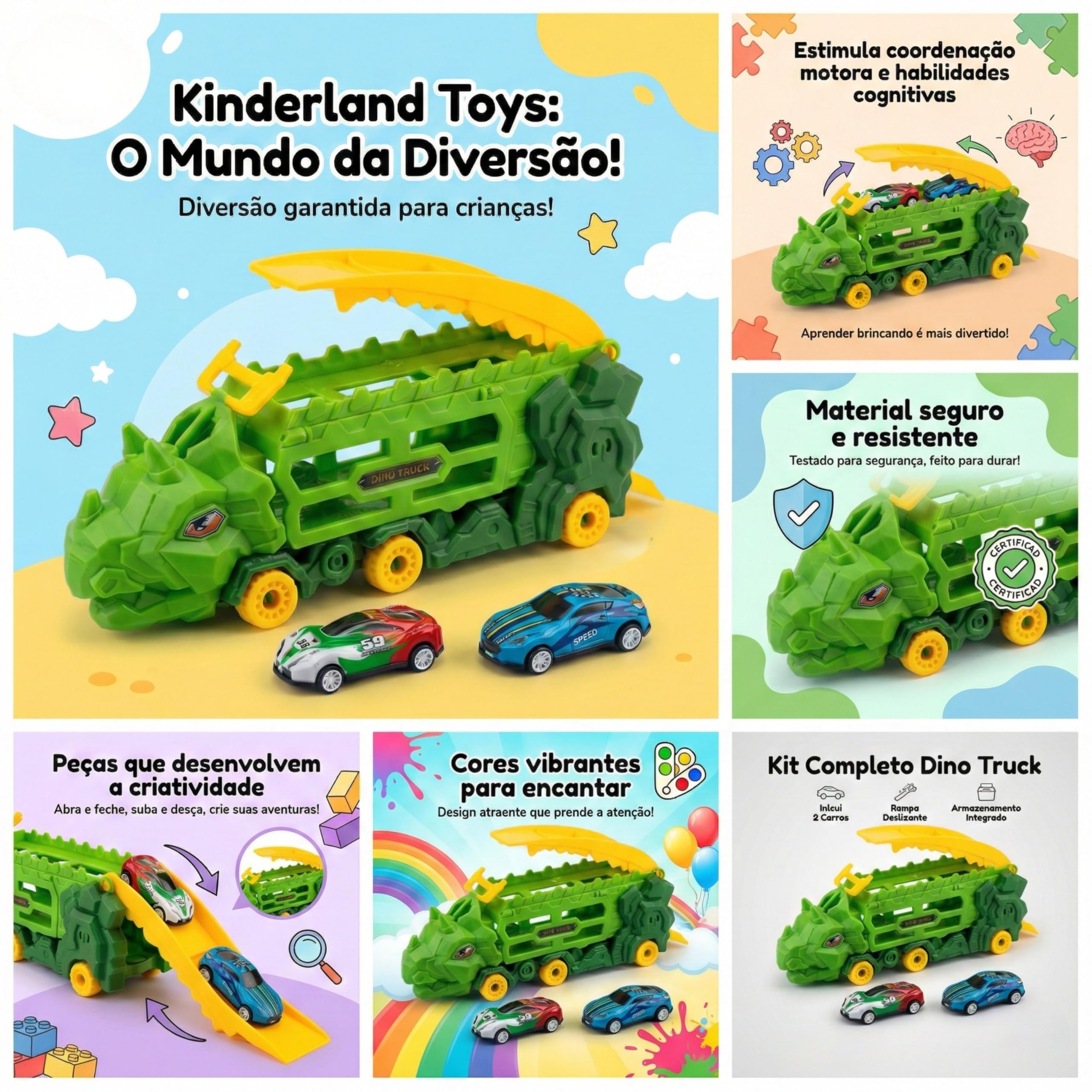 A Kinderland Toys apresenta o exclusivo Carrinho Dinossauro Transportador (KL-99), o brinquedo infantil definitivo que une a paixão por feras jurássicas com a adrenalina das pistas de corrida. Se você está cansado de ver as crianças presas ao tablet infantil ou ao laptop, este é o antídoto perfeito para estimular a criatividade real.