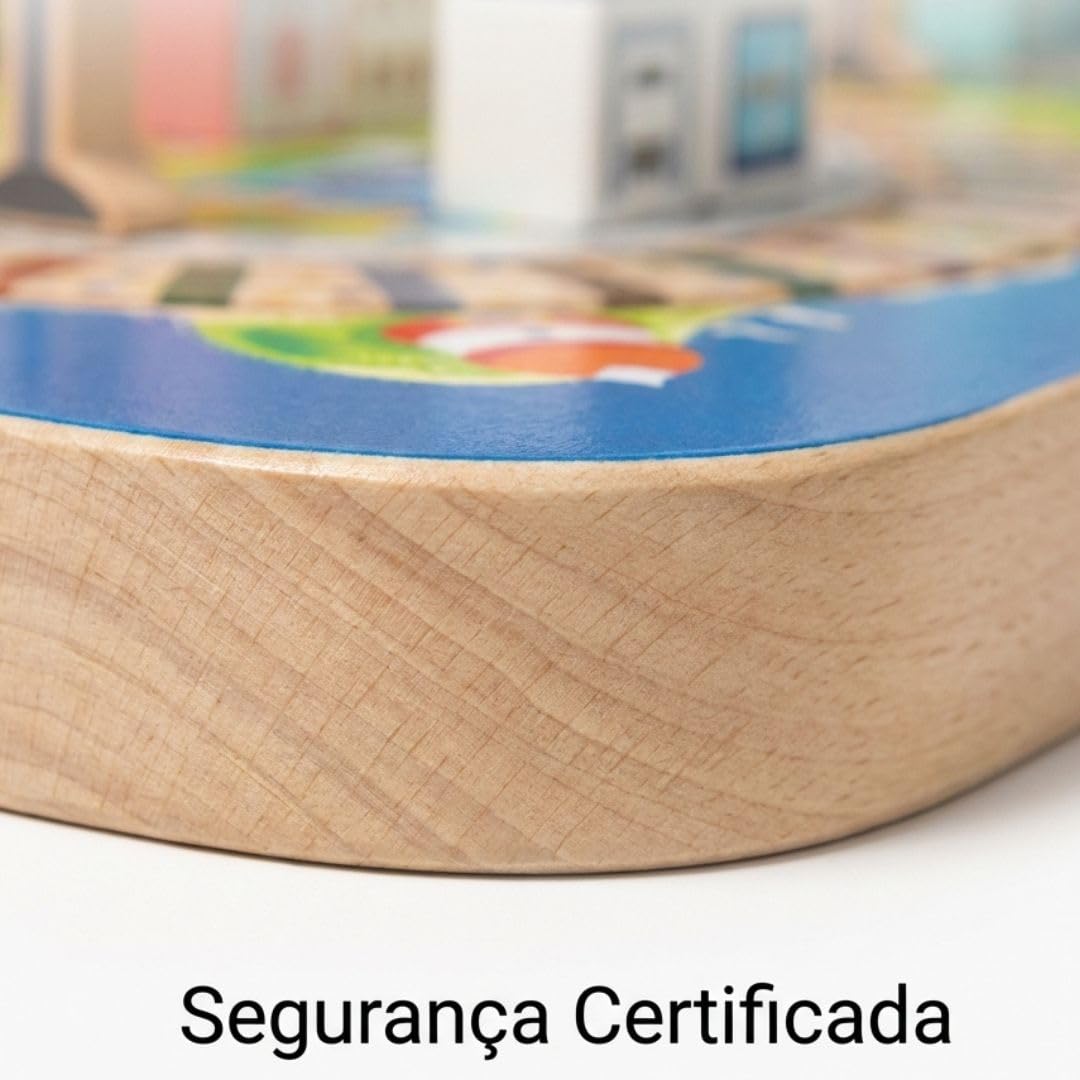 Inspirado nos princípios Montessori, este brinquedo promove a concentração profunda. A criança aprende sobre causa e efeito e lógica espacial ao contornar os obstáculos dentro do dinossauro. É um quebra cabeça de madeira resistente, feito para durar e resistir às brincadeiras mais entusiasmadas, superando em durabilidade os brinquedos baratos de plástico.