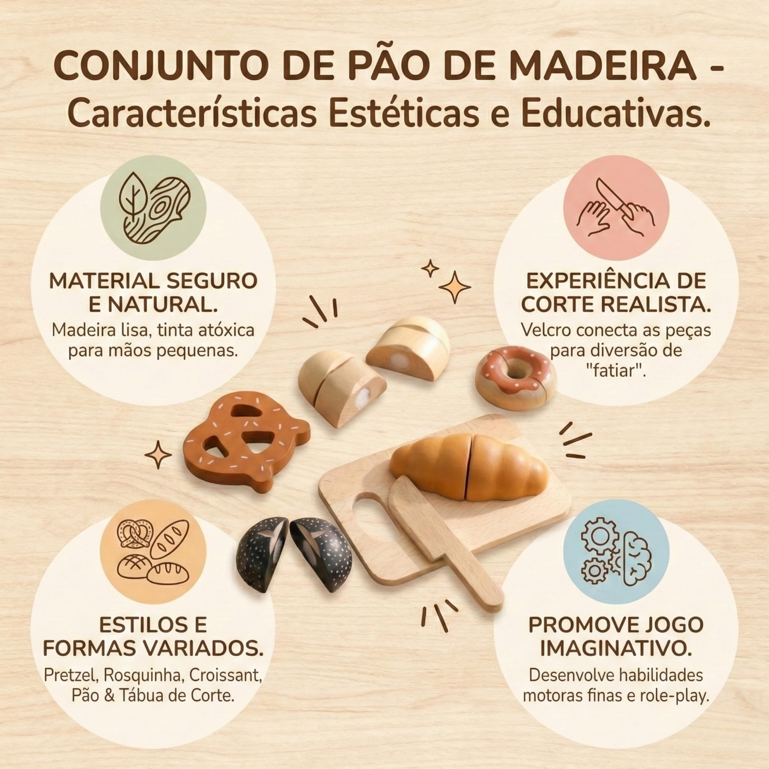 Bem-vindo ao mundo Kinderland Toys: Onde a Imaginação Ganha Vida com Qualidade Premium! Você está cansado de ver seus filhos presos ao tablet infantil ou ao laptop o dia todo? Como pais e fabricantes, sabemos que o desenvolvimento real acontece longe das telas. Apresentamos o nosso Kit de Padaria em Madeira, um brinquedo educativo projetado para transformar o tempo de jogo em uma jornada de aprendizado Montessori.Por que escolher o Kit de Comidinha Kinderland Toys? Nosso conjunto é muito mais que um simples brinquedo de madeira. Ele funciona como um quebra cabeça infantil tridimensional. Ao usar a faca de madeira para separar as peças unidas por velcro, a criança exercita a coordenação motora fina e a precisão, habilidades essenciais que um carrinho de controle remoto ou um boneco comum não conseguem proporcionar. É o estímulo perfeito para meninas e meninos de 2 a 6 anos.Segurança e Durabilidade que os Pais Amam Esqueça os brinquedos de plástico que quebram facilmente. Nosso kit é robusto e seguro. Se sujar, a limpeza é simples: apenas um pano e sabão neutro mantêm tudo novo. Ele é ideal para ser usado no tapete de atividades bebê, sendo um excelente complemento após um passeio de bicicleta de equilibrio ou patinete infantil. Mais Valor para sua Casa Diferente de um carro eletrico infantil que ocupa metade da sala, ou de um teclado musical barulhento, nosso kit de padaria promove o “brincar silencioso”. Ele estimula o role-play, onde seu filho pode fingir ser um padeiro ou dono de uma caixa registradora infantil, servindo toda a família. É o presente menina 5 anos (ou qualquer idade pré-escolar) que realmente adiciona valor à vida da criança.O que nos diferencia? Somos uma marca de pais para pais. Testamos cada peça para garantir que o velcro tenha a resistência certa para o “clique” satisfatório ao cortar, imitando a realidade. Seja para o Dia das Crianças ou aniversário, este brinquedo educativo 2 anos ou mais é a escolha inteligente para quem busca o melhor em brinquedos educativos no Brasil. Dê ao seu pequeno a chance de criar memórias afetivas reais. Adicione o Kit Kinderland Toys ao seu carrinho e veja a mágica do aprendizado acontecer!